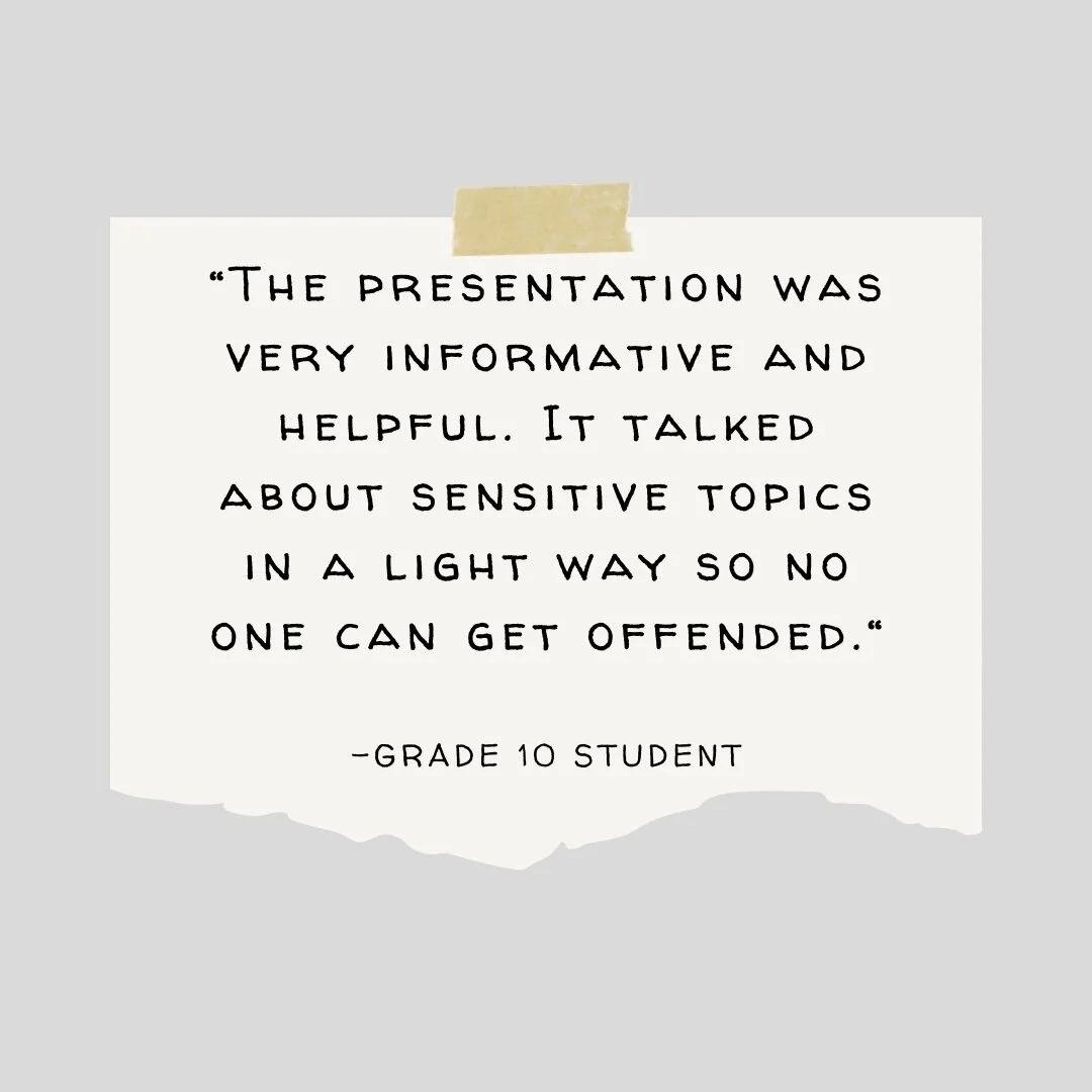 this through engaging and relevant workshops and presentations that challenge students to think critically and to analyze the messages they receive about sex and relationships.